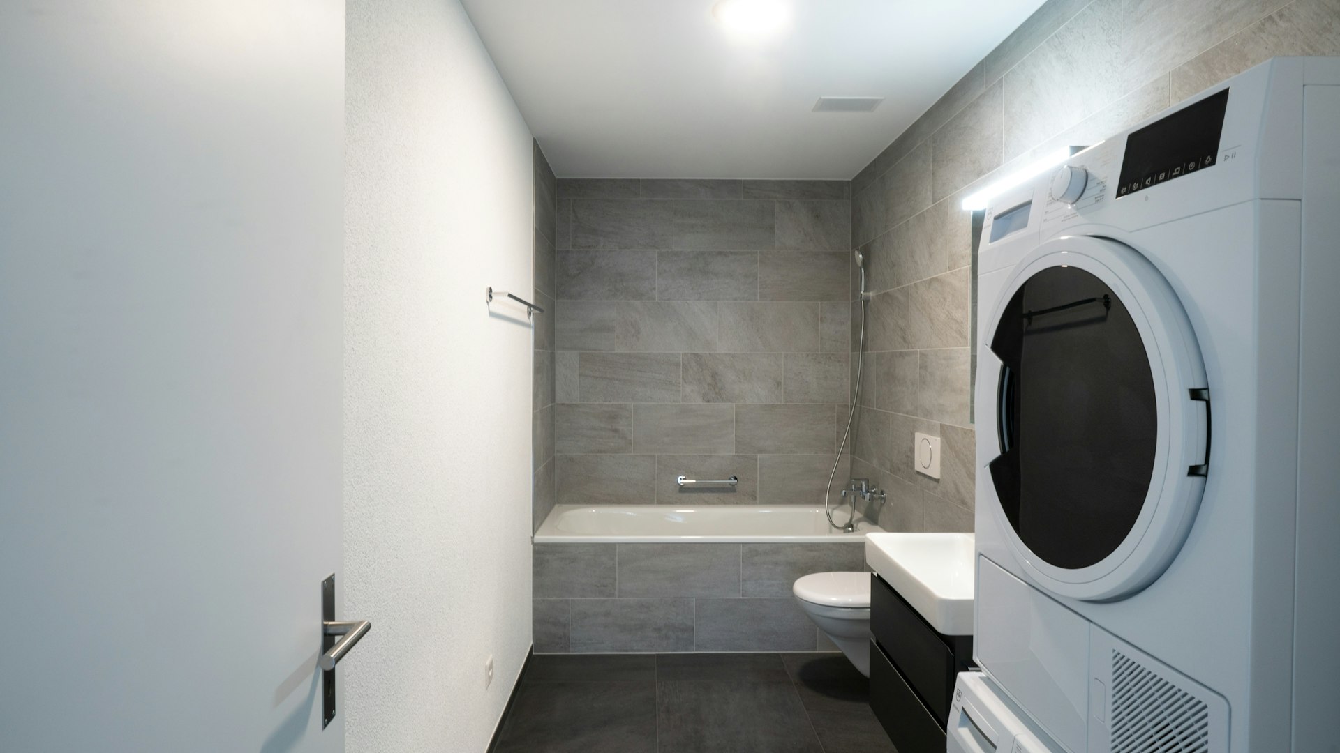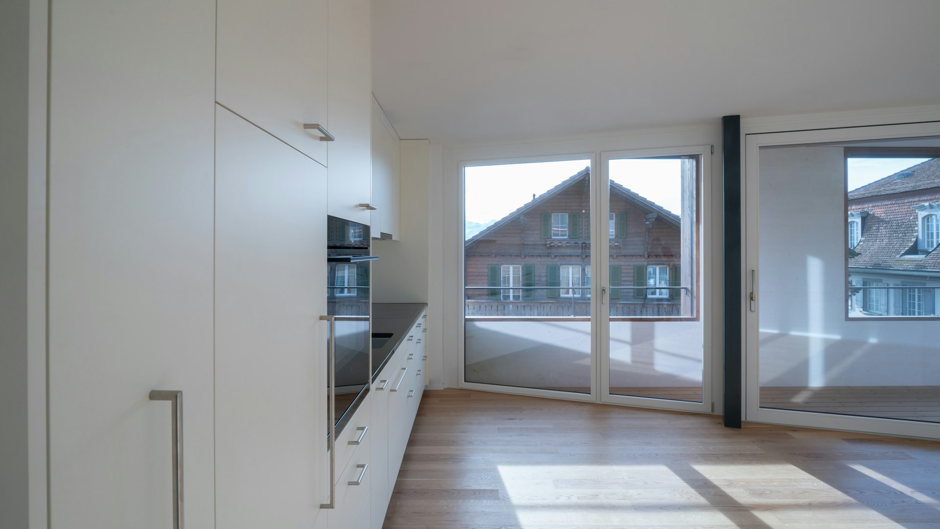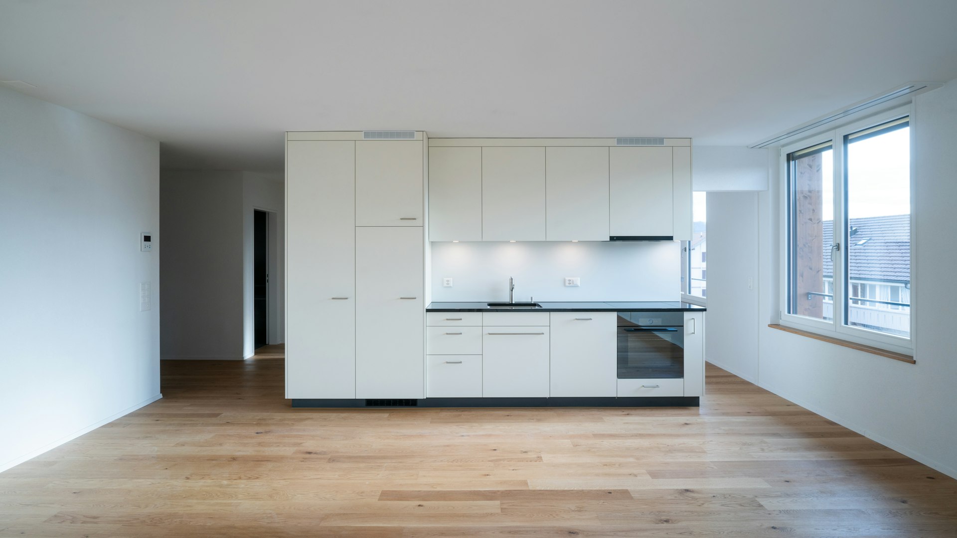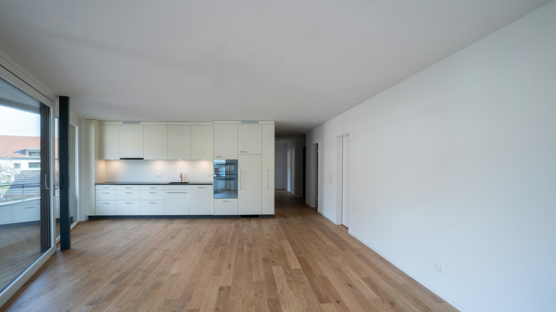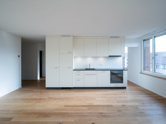 Steinzeugplattenböden in Nasszellen und Treppenhaus sonst überall Parkettböden auch in 1-2 Reduits pro Wohnung, Holzriemenboden in Loggias. Küchen mit Steinabdeckungen und V-Zug Geräten, z.T. mit Backofen und Steamer. Jede Wohnung mit eigenem V-Zug Wäscheturm (Waschmaschine und Tumbler). Grosse Wohnungen mit Badezimmer und separaten Duschräumen, je mit WC.