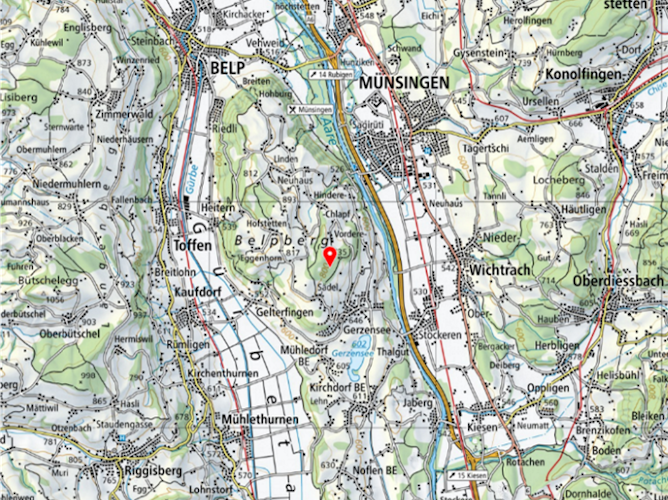 Bernmobil bindet mit einem Busbetrieb das Dorf an die Bahnlinie Bern-Thun an (sbb.ch).